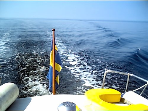 Det blir en solig behaglig färd utan sjögång. Perfekt motorbåtsväder.