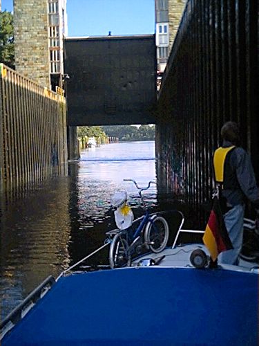 Slussar vid 19-tiden ut vid Lauenburg, de två sista slussarna är till vår