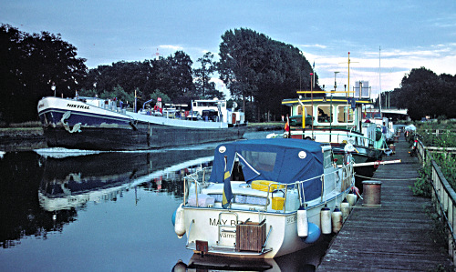 Ett par timmar senare kommer en fransk pråm och vi måste flytta oss en bit.
