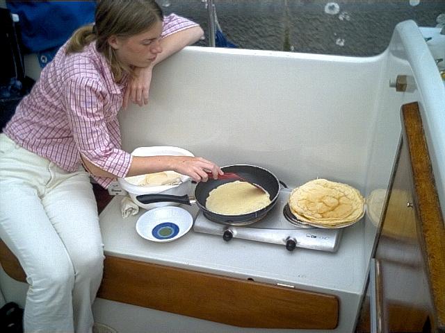 det är en gammal tradition från vår tidigare resa att det blir pannkakor när vi