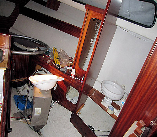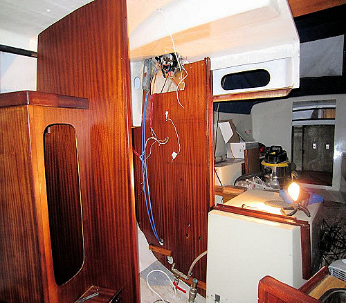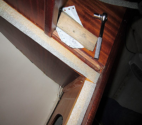 Monterat pentryt och skruvhål i pentryt och i skrovet passade hyfsat mot