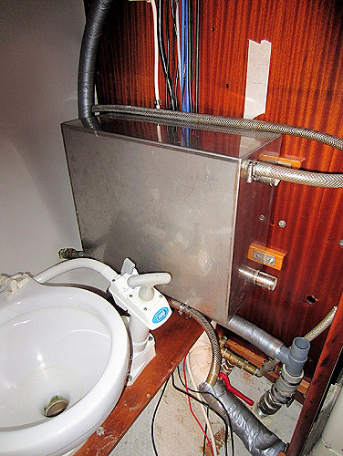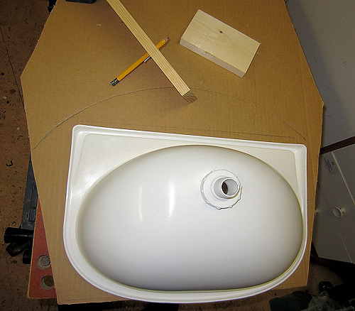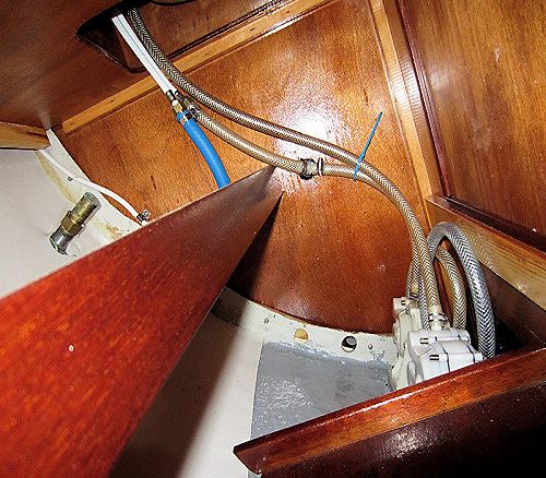 Jag har monterat utloppet för diskhon i skrovsidan ovan vattenlinjen.