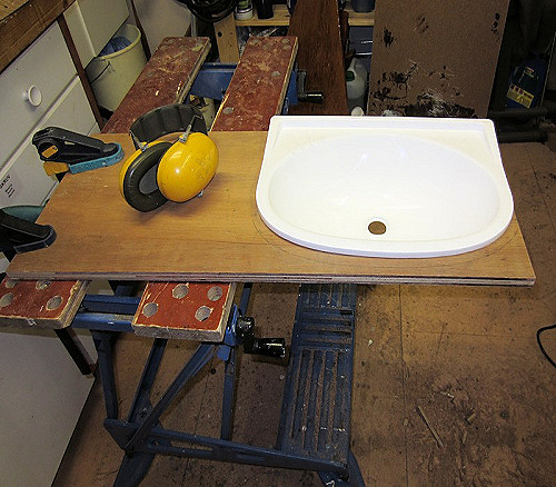 Tvättstället på plats i bänkskivan.