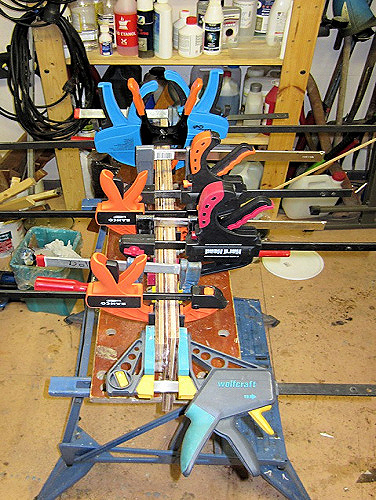 Limmar på lister för upplag till durkluckan samt förstärkningar.
