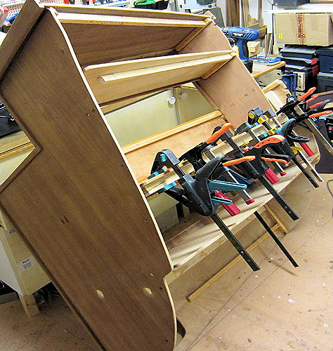 så förstärker jag alla horisontala skivor med lister, som limmas och