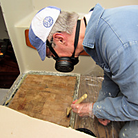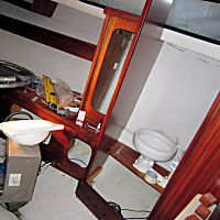 Dock målade vi rufftak och de främre delarna av ruffens träinredning slipades
